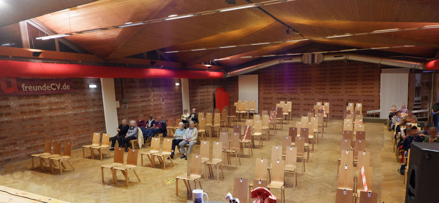 Als Freunde u. FördererCV vor nunmehr 6 Jahren, die Forderung erhob, den Saal mit einer Lüftungs-anlage auszustatten, ahnte Inge Knols, die dieses Projekt mit bewunderungswürdiger Zähigkeit vorantrieb, noch nicht, dass dieses Unterfangen bis zur Verwirklichung 6 Jahre für Planung und Genehmigung benötigte. Inzwischen ist die Lüftungsanlage fertiggestellt und ermöglicht uns, den Taborsaal wieder" zu bespielen"
